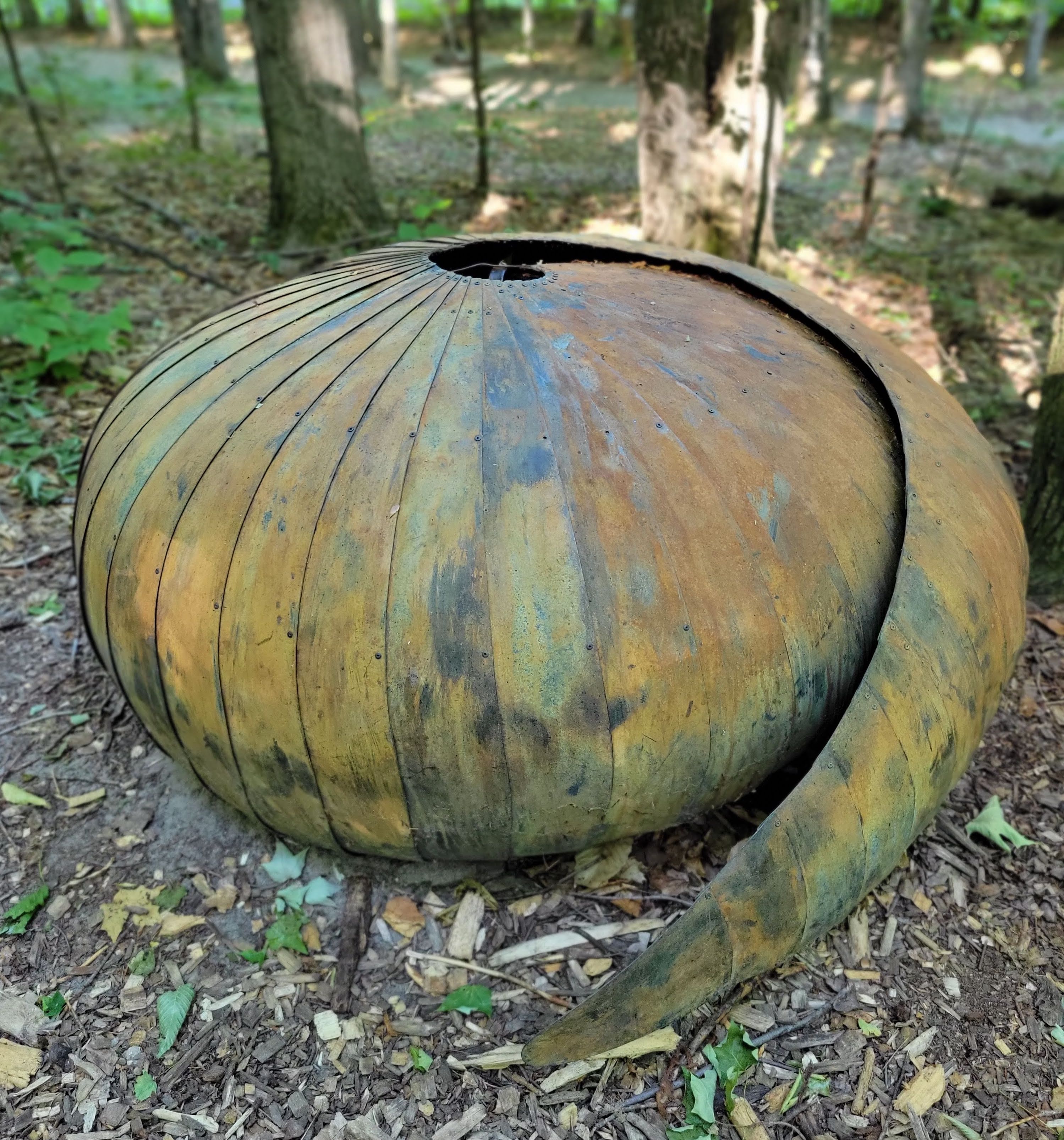 Browse: Home   /   Arts and Entertainment   /   Michigan Legacy Art Park – Nature, History, and Sculptures at Crystal Mountain (Thompsonville)   /   Michigan Legacy Art Park Unravel Sculpture Detail Crystal Mountain