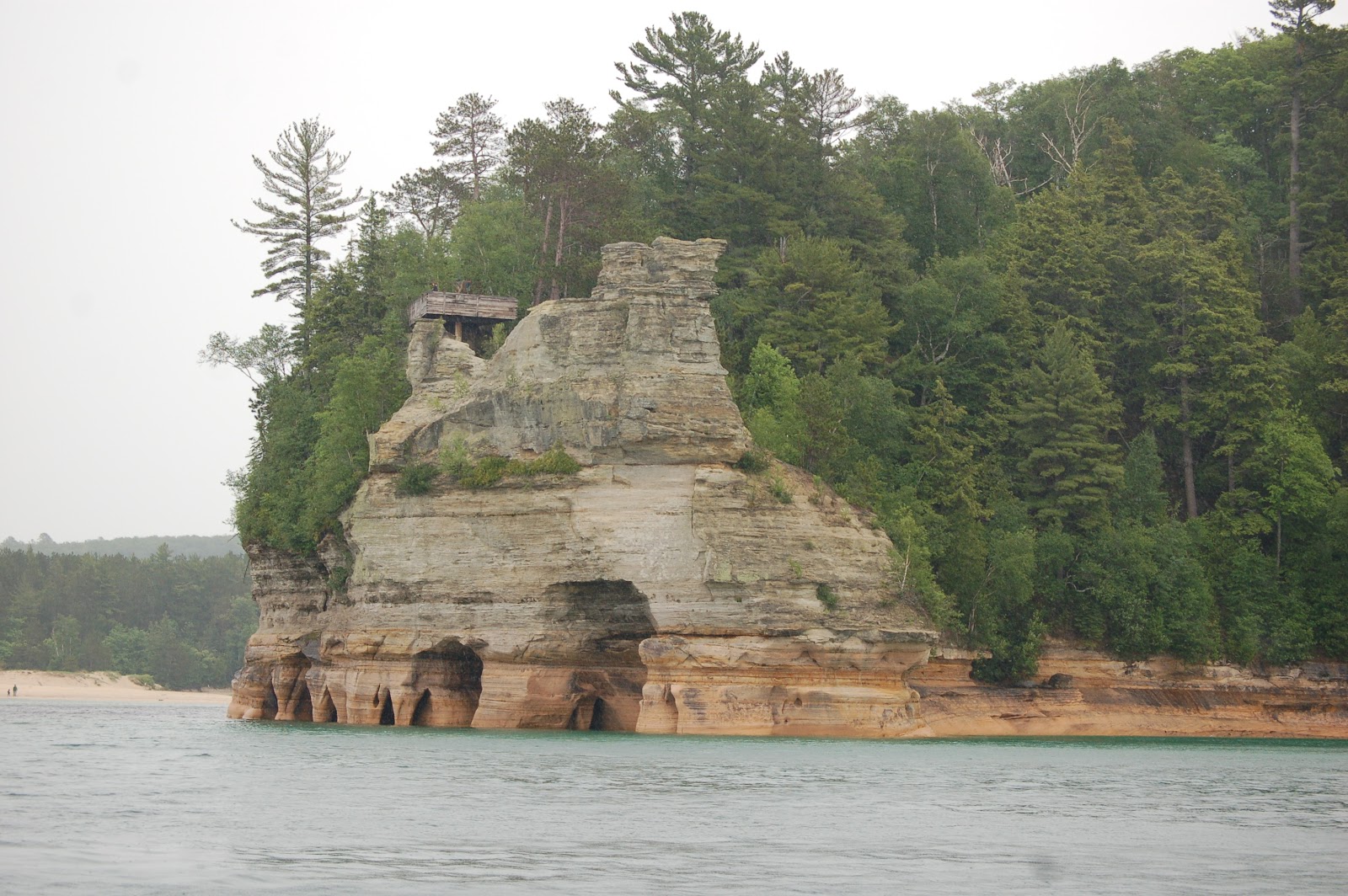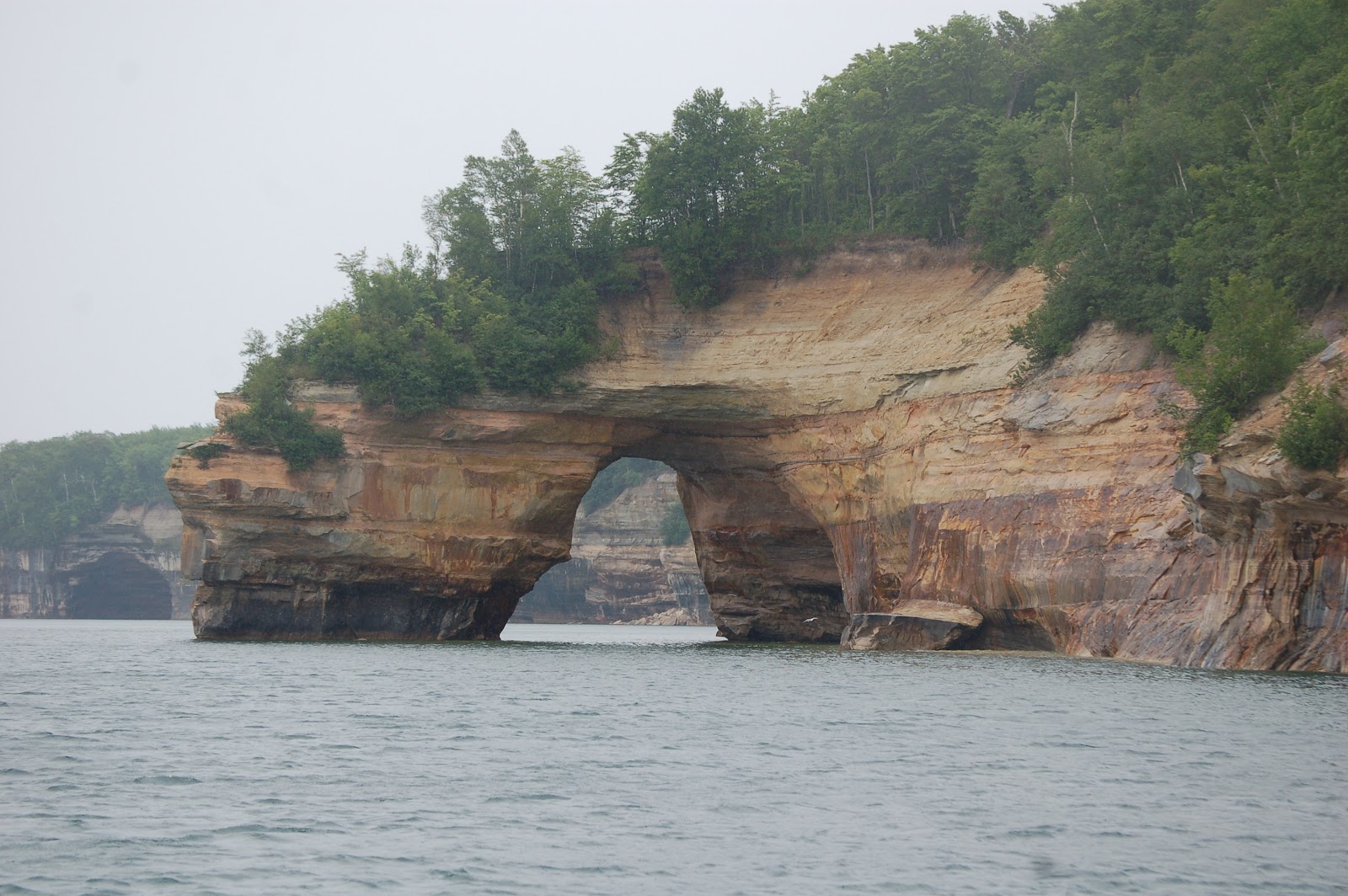 The Pictured Rocks Boat Cruise operates out of Munising and offers many departure times during the day. We chose one of the later, extra time ones in order to get a view of Spray Falls (worth it as you will see). Despite leaving the harbor to an overcast sky and light rain, it did not hinder our experience or my picture taking – the lower deck has windows that open for full viewing and I was able to capture many great pictures while barely getting myself or my camera wet. The Grand Island East Channel Lighthouse and the occasional bald eagle are among the highlights of the trip that aren’t rocks or water.